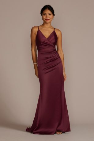 Satin Spaghetti Strap Mermaid Bridesmaid Dress David S Bridal